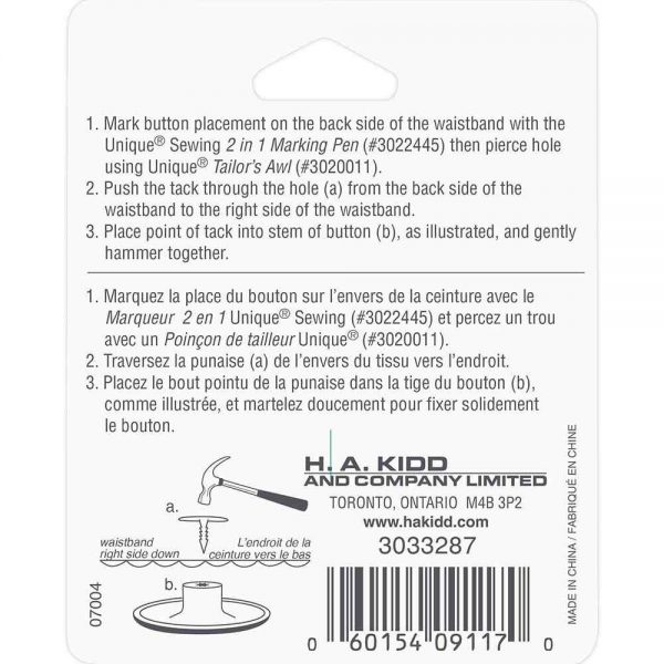 A ″no-sew″ jean button. All you need is a hammer to pound the tack into the button head.