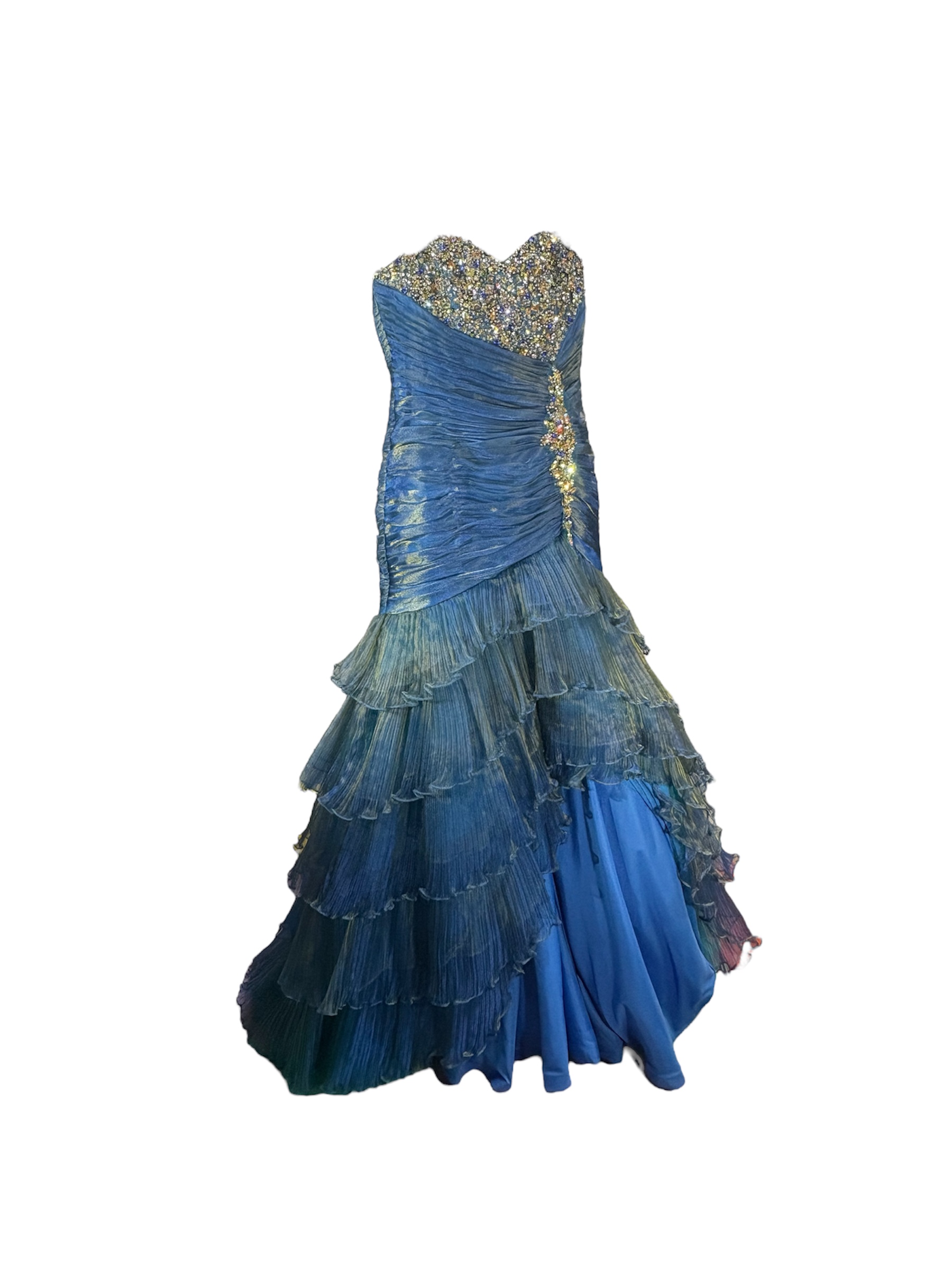 -Blue/green gown with bedazzled bust