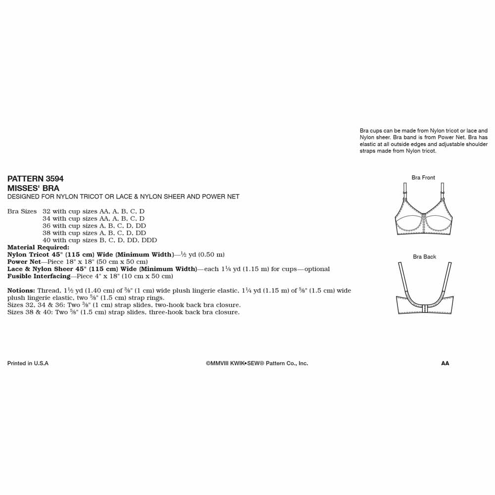 Designed for Nylon tricot or lace & nylon sheer and Power Net. Bra cups can be made from Nylon tricot or lace and Nylon sheer. Bra band is from Power Net. Bra has elastic at all outside edges and adjustable shoulder straps made from Nylon tricot.