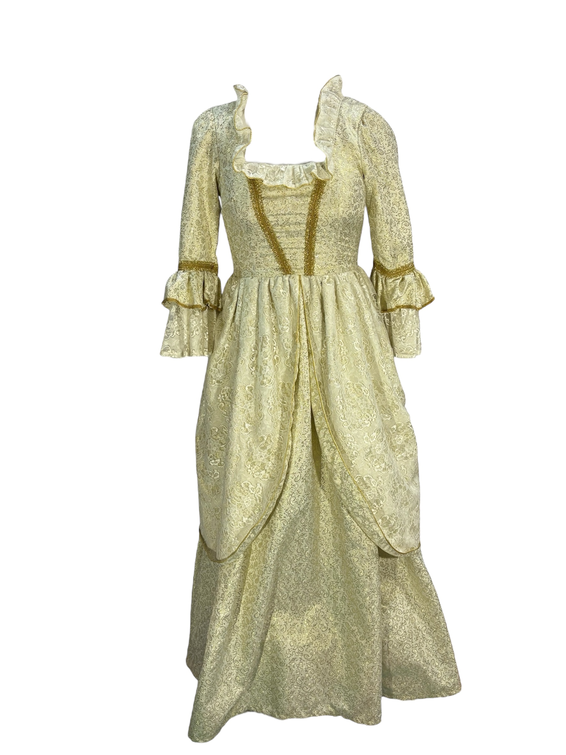 - Cream and gold brocade and lace dress