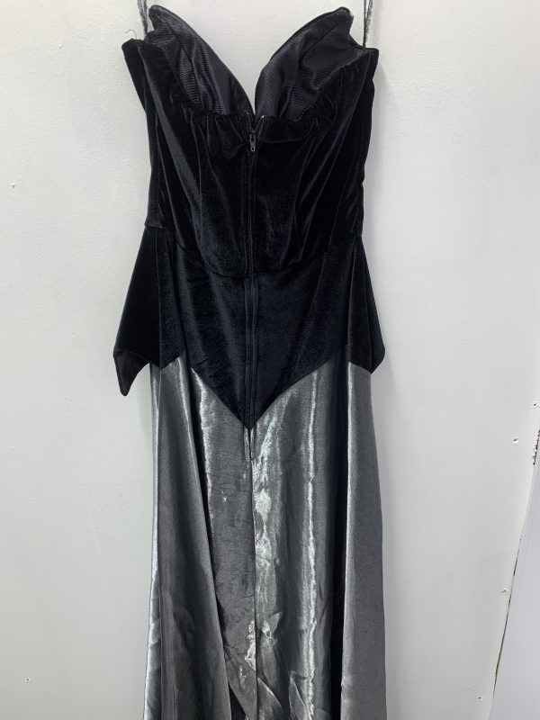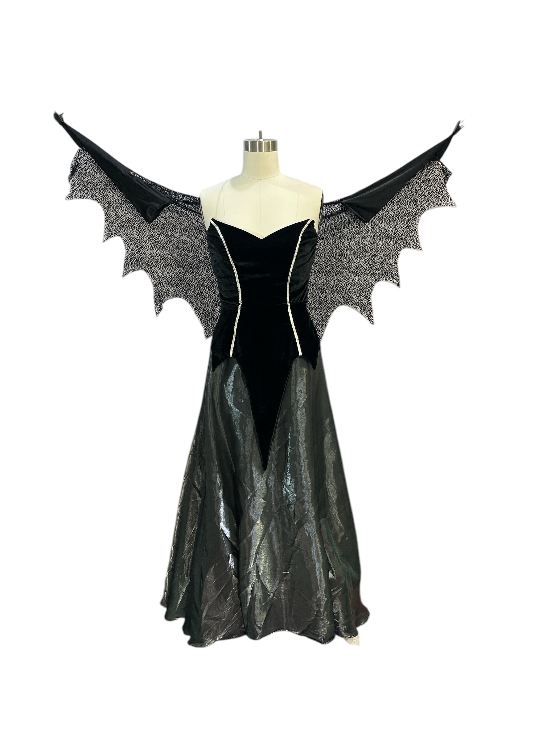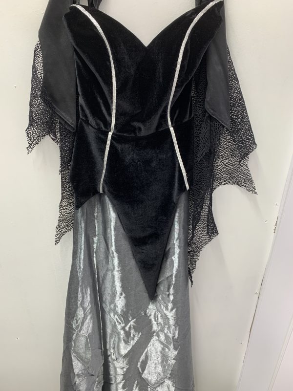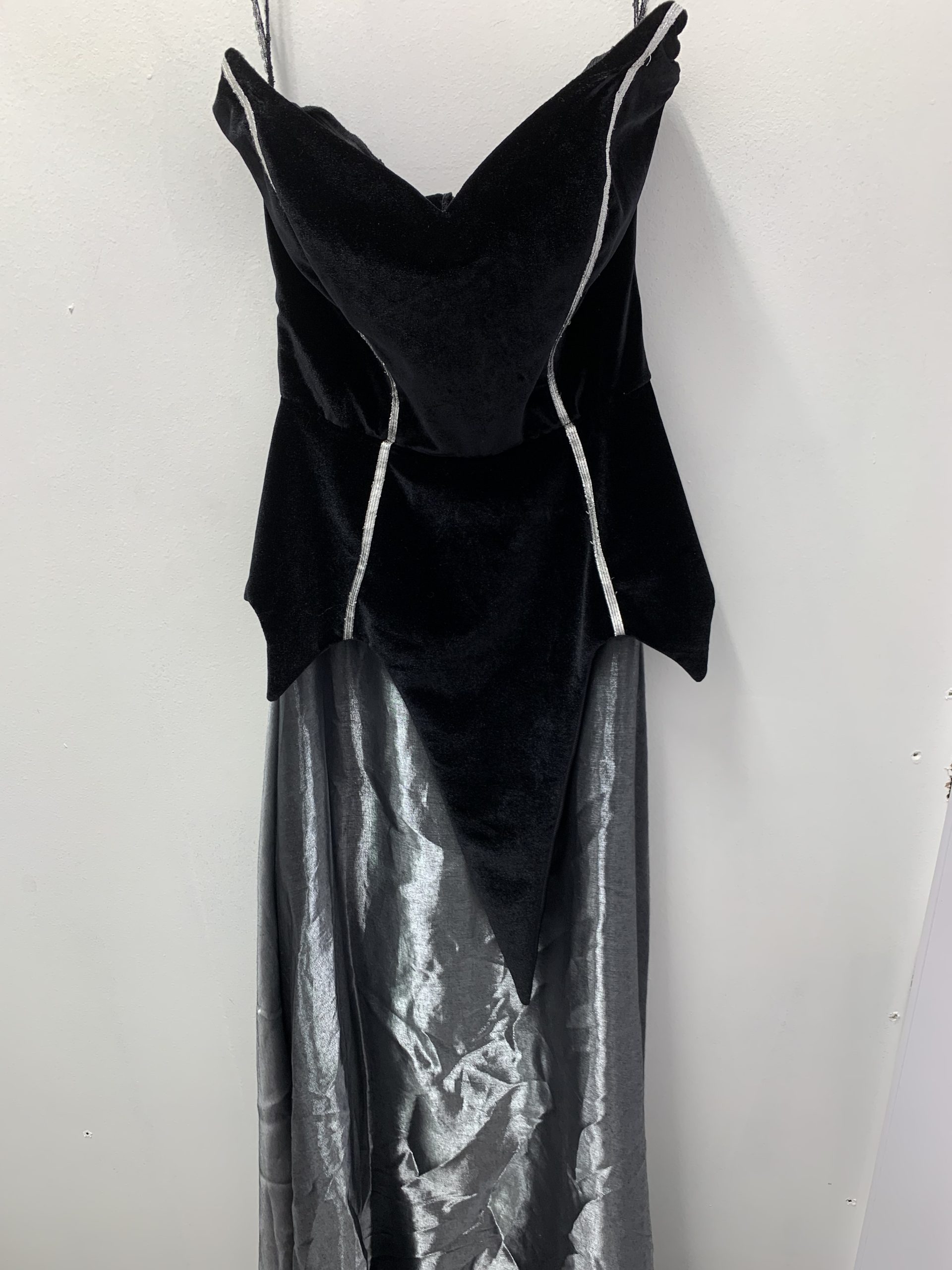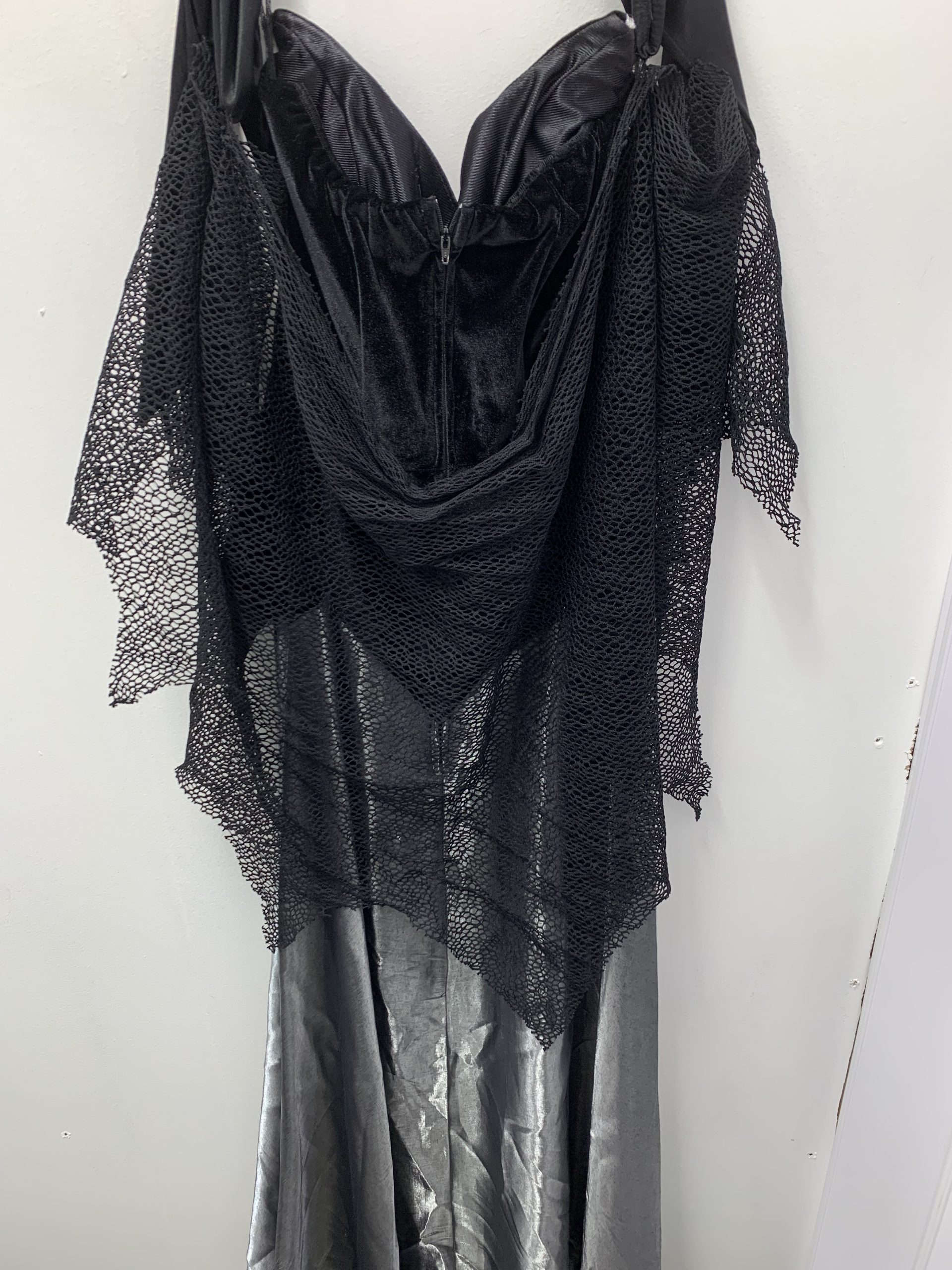 -Black/Silver Dress Silver Trim on Bodice, Spider Web Netting Attached to Sleeves