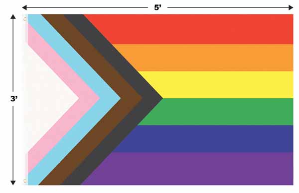 3'x5' (91 cm x 152 cm) Progress pride flag with grommets.