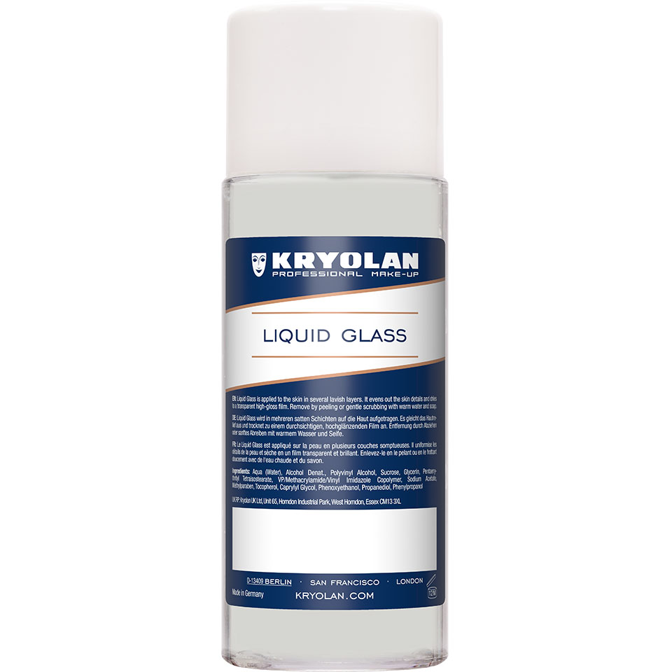 Liquid Glass is a viscous preparation with a low alcohol content which evens out skin details and dries to an extremely glossy finish. It is applied to the skin in several lavish layers, which should dry in between - a hair dryer speeds this up if necessary. The fully dried film is completely transparent, very reflective and appears almost like a glass coating. Liquid Glass can be used over large areas or to accentuate details. Liquid Glass can be lifted as a film after completely drying or it can be gently rubbed off with warm water and soap.
