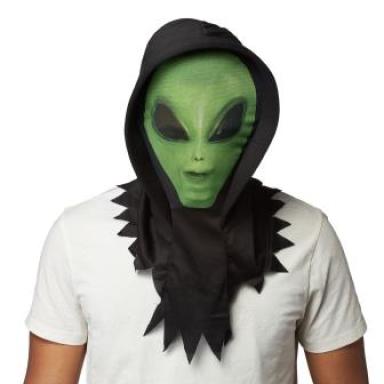 A fun and easy costume piece that is great for spooking your friends. This hood style mask features a designed mesh front and black hood.
