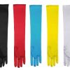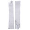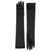 Elbow length satin look gloves. Made of stretch fabric making for an easy fit.