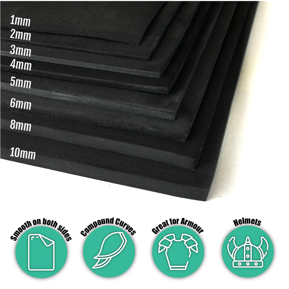 - Super formable EVA foam, heat forms very easily for compound curves and armour.