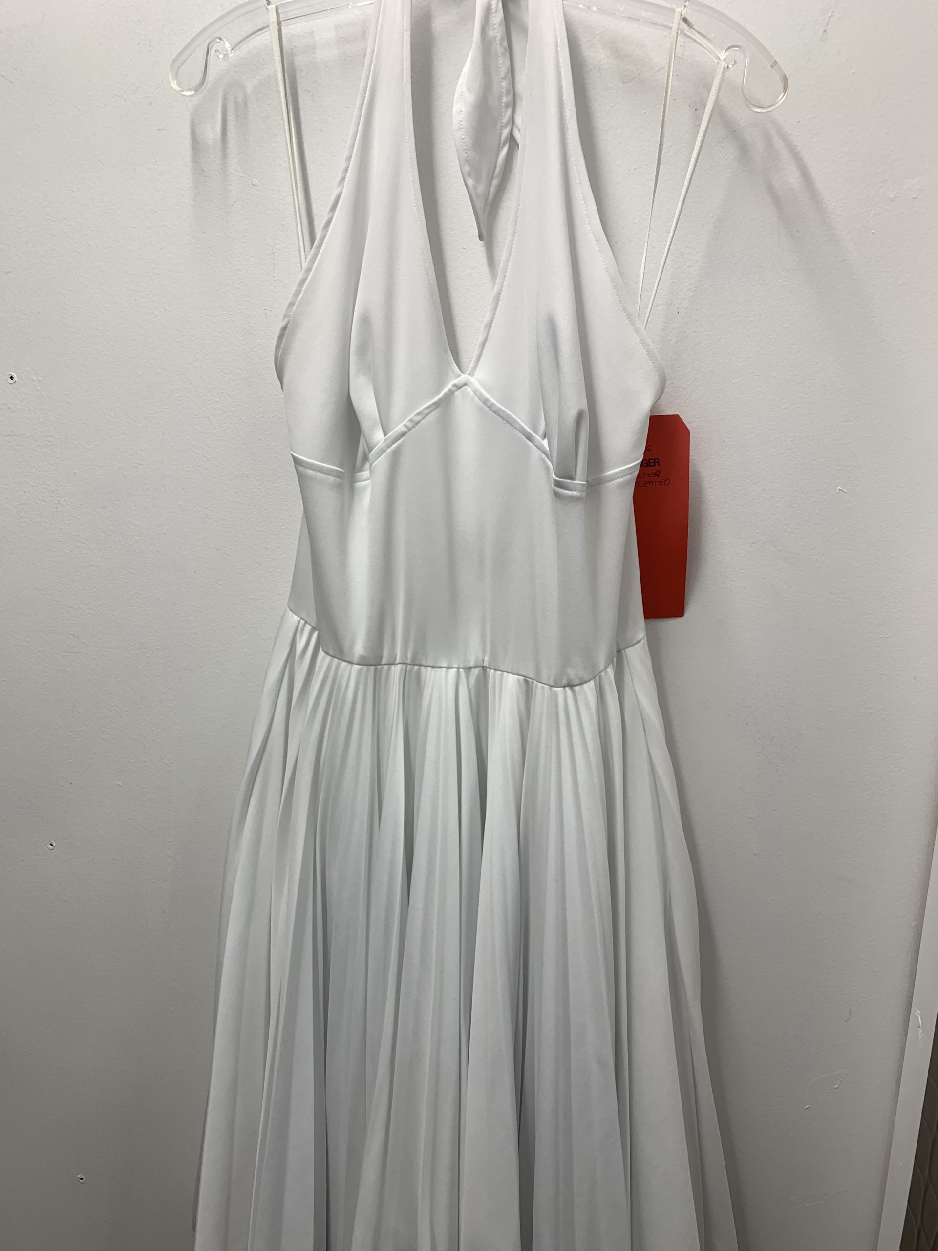 -White Halter Dress with Pleated Skirt