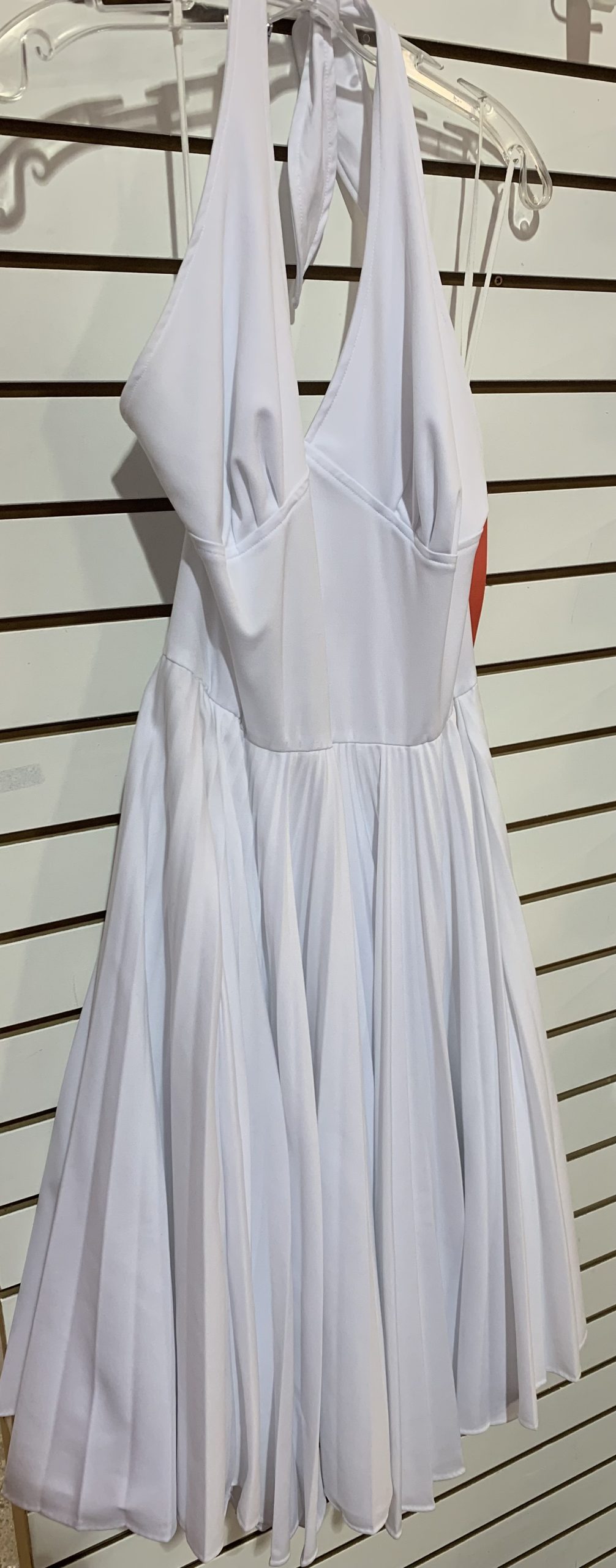 Marilyn Wig, White Halter Dress w/Pleated Skirt