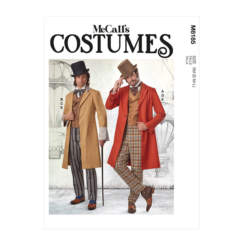 he Victorian gentleman gives full attention to every detail of his attire. His garment is composed of a slim coat, vest & pants of mismatching prints & materials. This men's costume is a must have for your reenacting, steampunk, LARP wardrobe.
