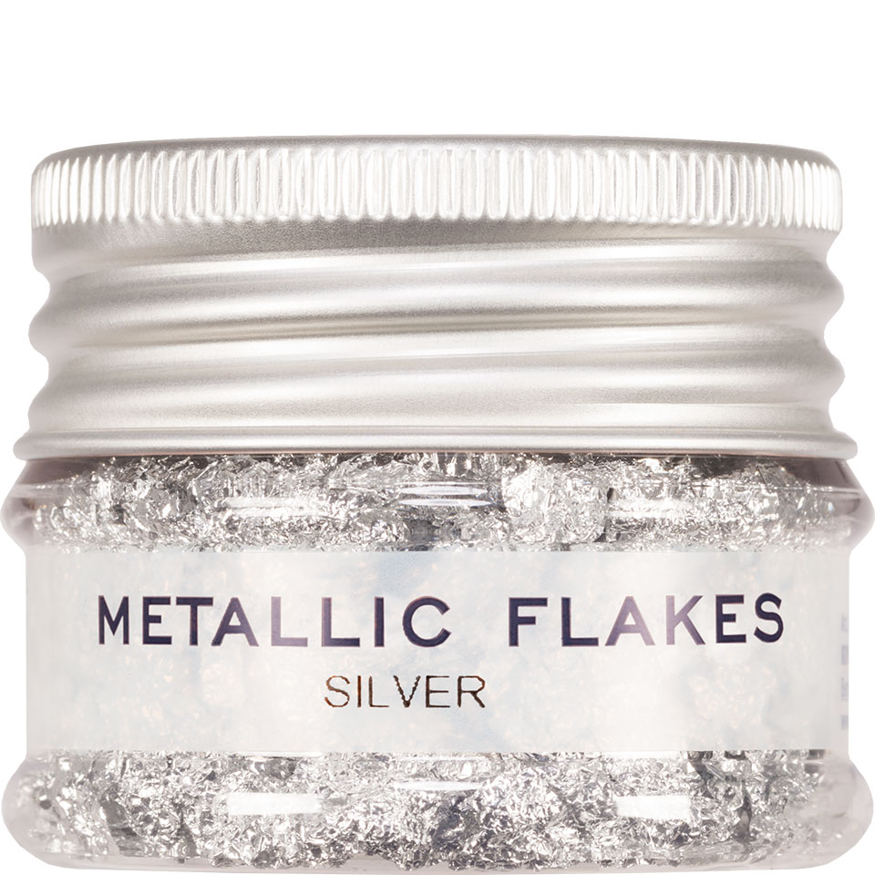 Metallic Flakes are very fine metal flakes to decorate artificial surfaces. Use Hydro Spirit Gum, Multi Gel or another mild adhesive to adhere Metallic Flakes.