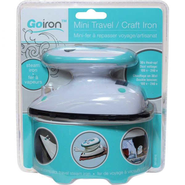 Exceptionally compact travel steam iron. Rubber ring around the handle for a comfortable ergonomic fit. Non-stick soleplate. Dry / continuous steam. Dual voltage 100 V - 240 V. Heats up quickly - 30 seconds. 40 ml water tank. Includes: water filling cup & storage bag.