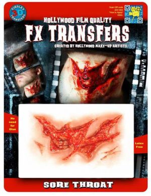 FX Transfers apply with only water and stay on all night. Created by Hollywood FX artists to be the most realistic wound FX on the market.