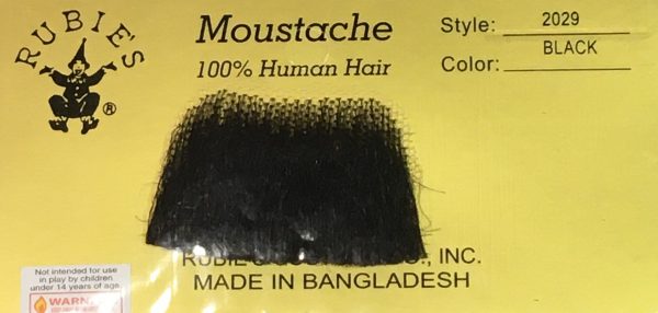 100% Human hair mustache hand tied on lace. Is re-usable, top quality mustache. This Mustache does not come with a sticky back. We recommend applying with spirit gum and removing with spirit gum remover. For short periods of wear toupee tape can work as well.