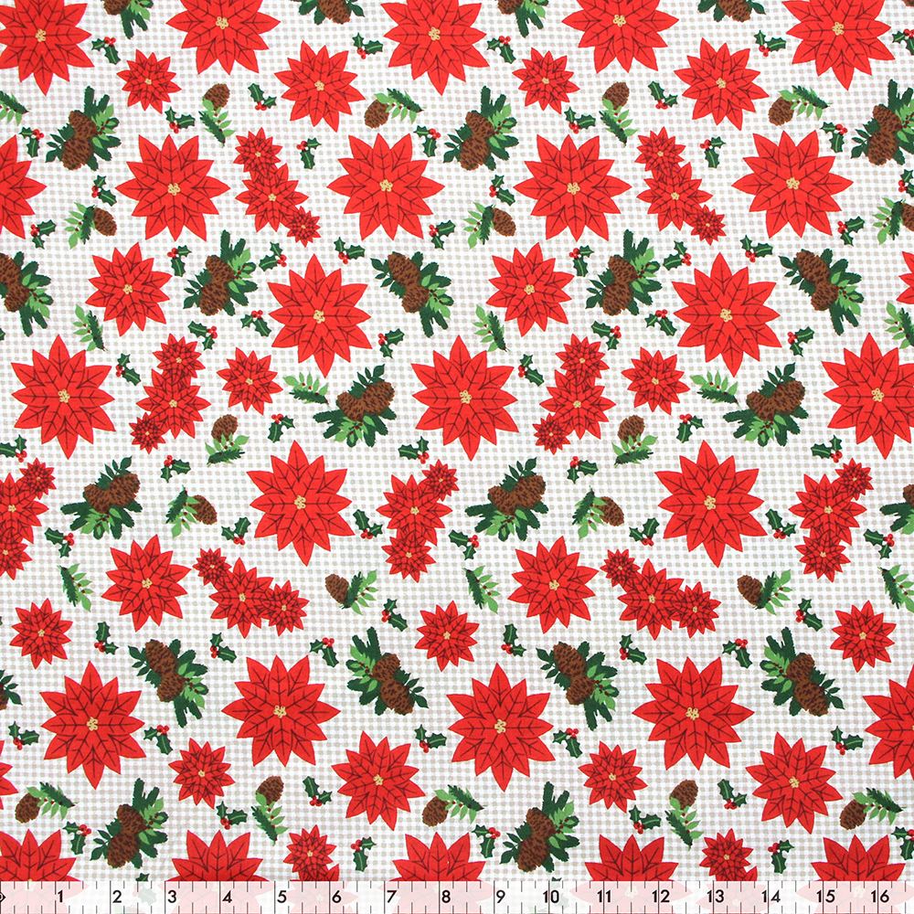 N-F820 White Weave with Red Christmas Poinsettias Cotton