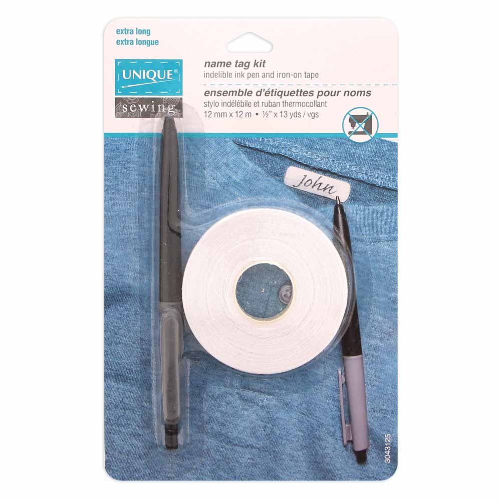 For marking costumes, school supplies, sports equipment, camping gear, clothing, etc. Complete kit for making name tags.
