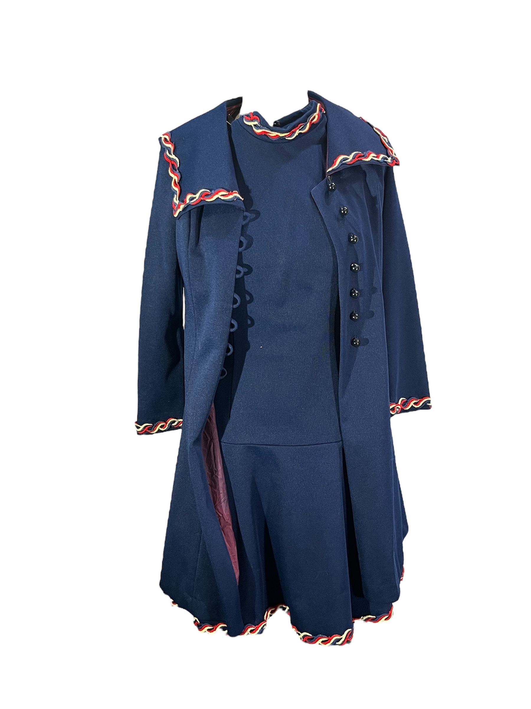 -Navy dress with red, white, and blue trim