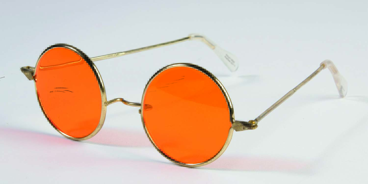 These fun gold framed hippie glasses are great for costumes! The are metal with plastic lens. They do not provide protection from UV rays. One size, 14+