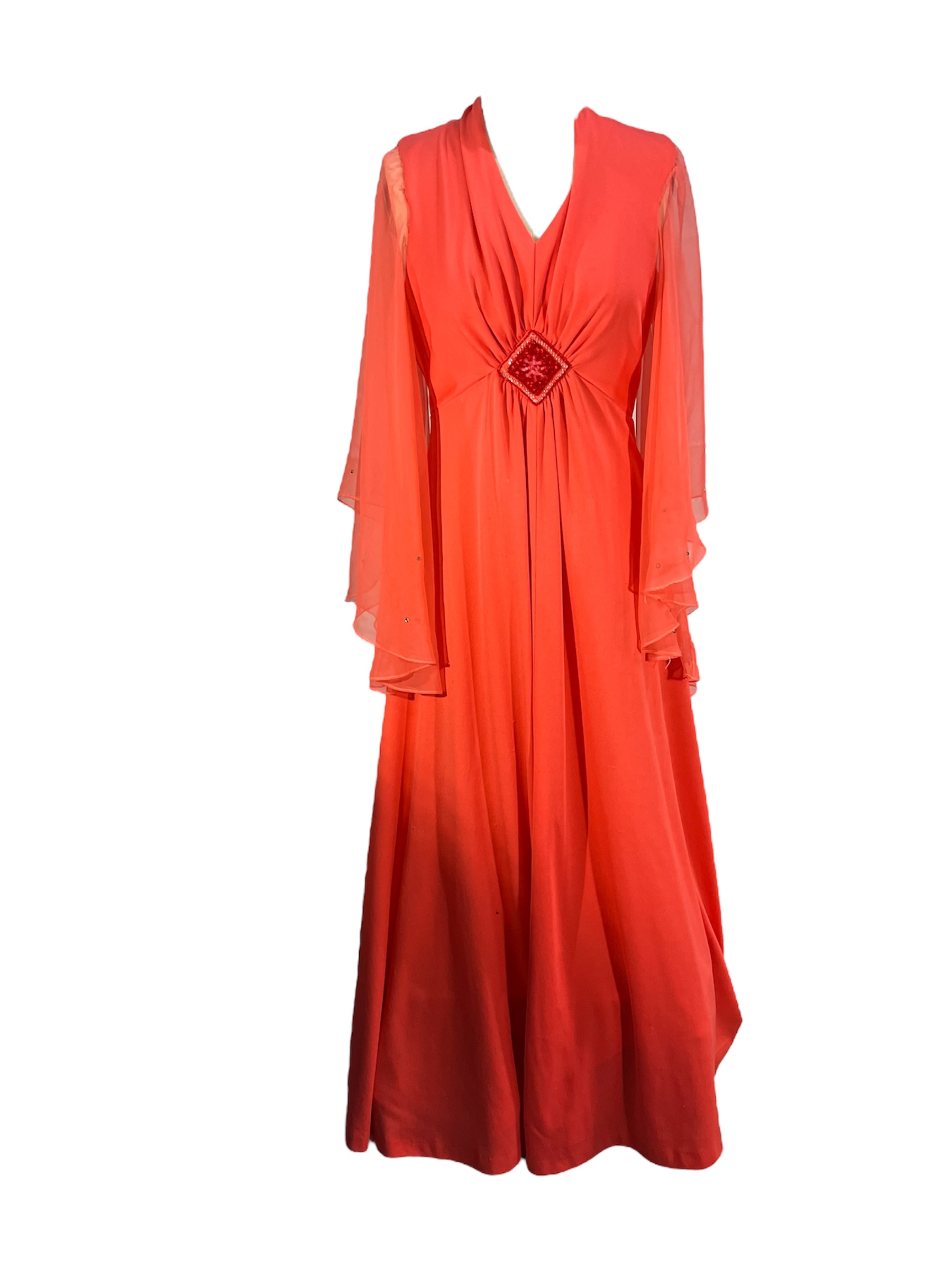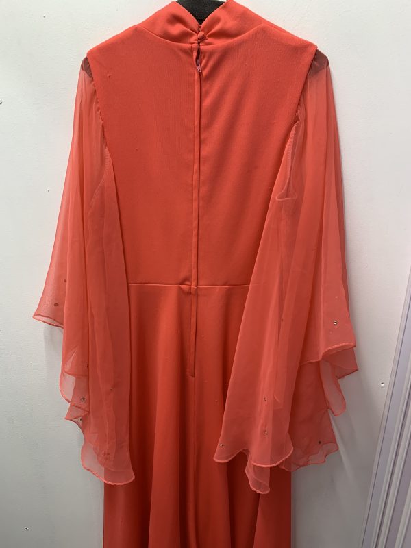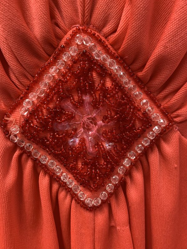- Pink dress with applique in center and sheer rhinestoned sleeves