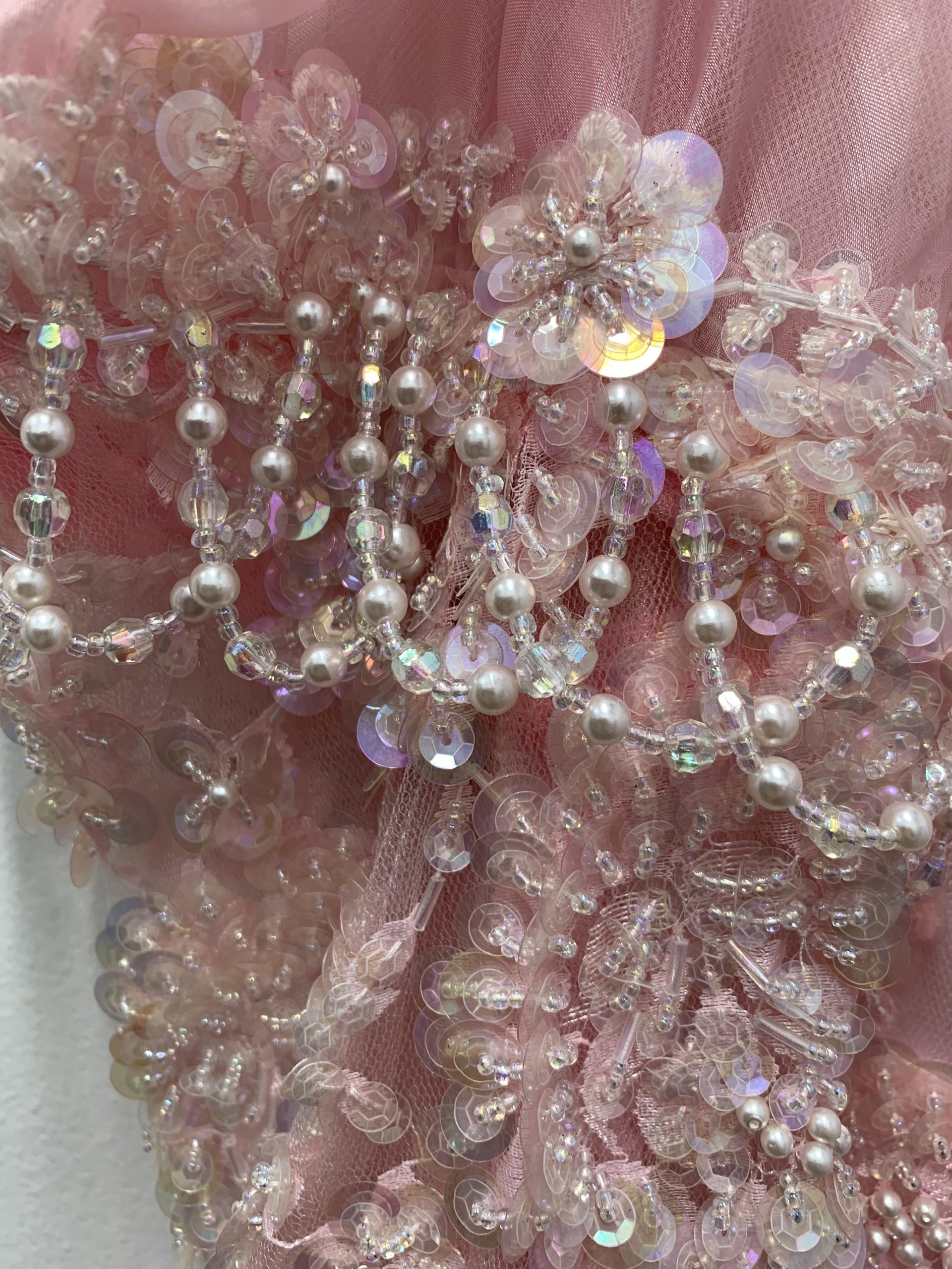 - Pink mermaid dress decorated with sequins and beads