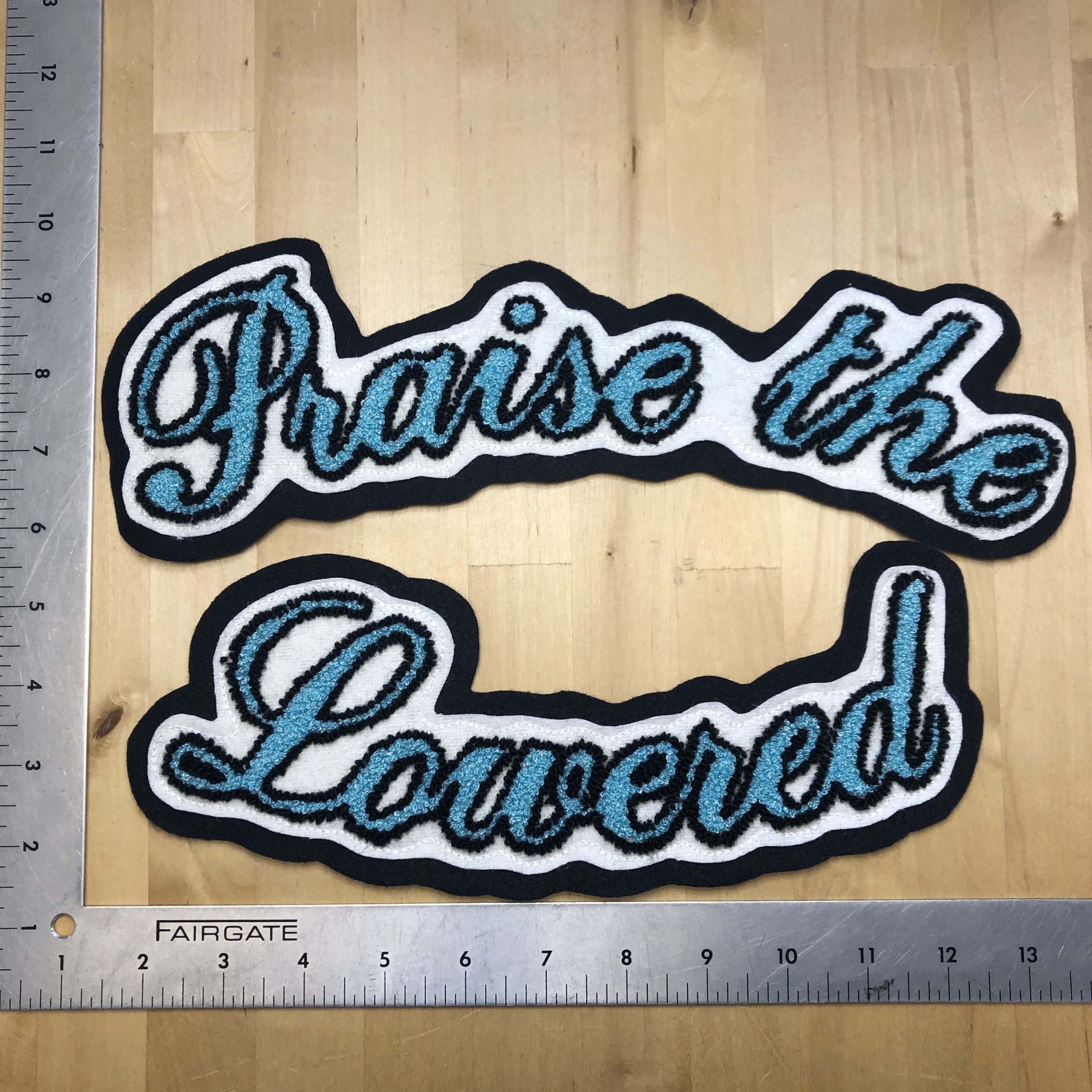 Home / Sewing / Trim And Embellishments / Appliques / 1950's Appliques / Praise the Lowered Patch -Blue