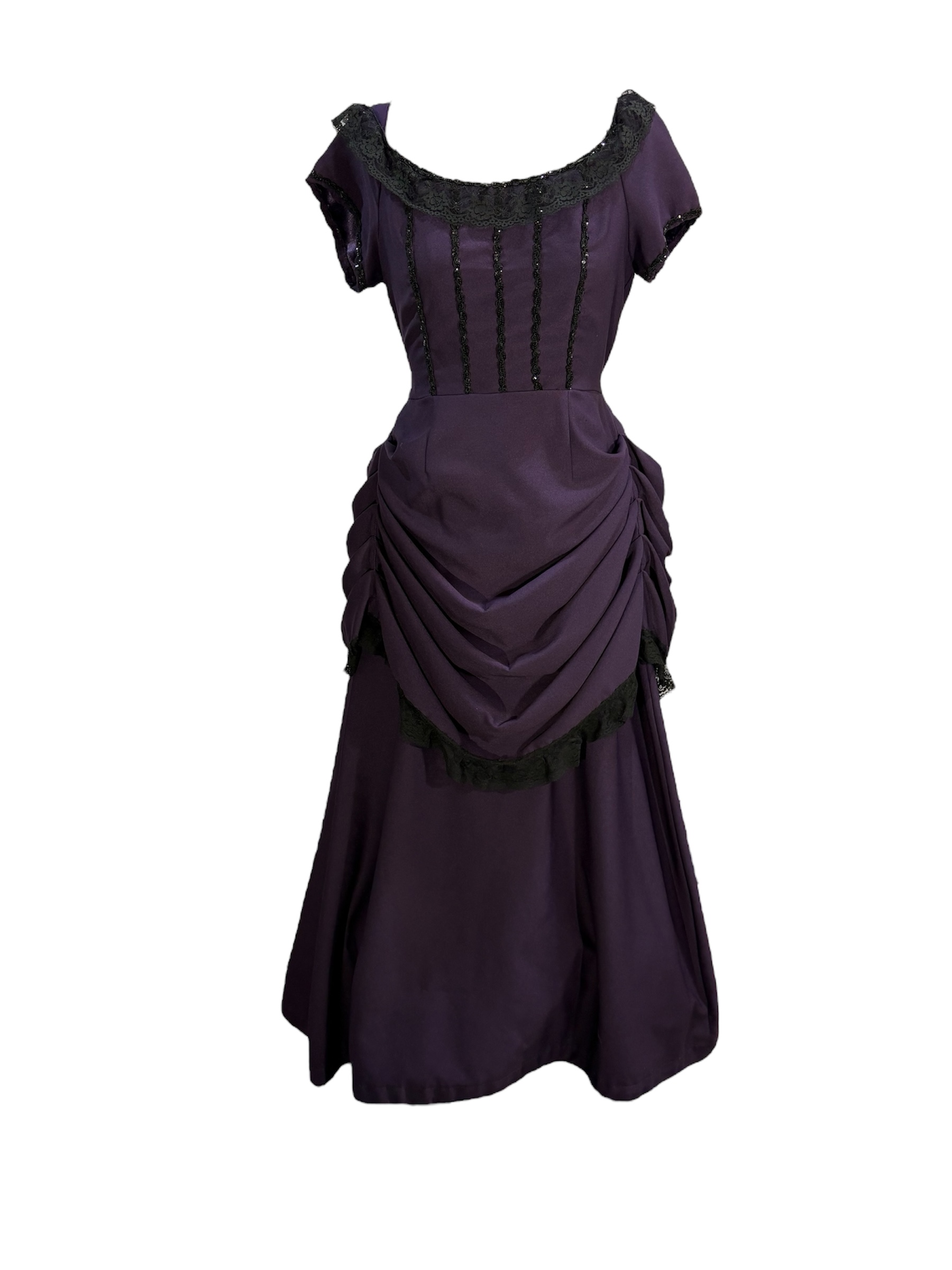 Purple Dress, Sequin Trim, Black Lace, Black Ribbon Tie