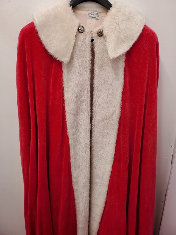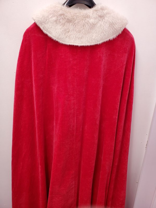 -Red cape with white fur collar and front fur trim