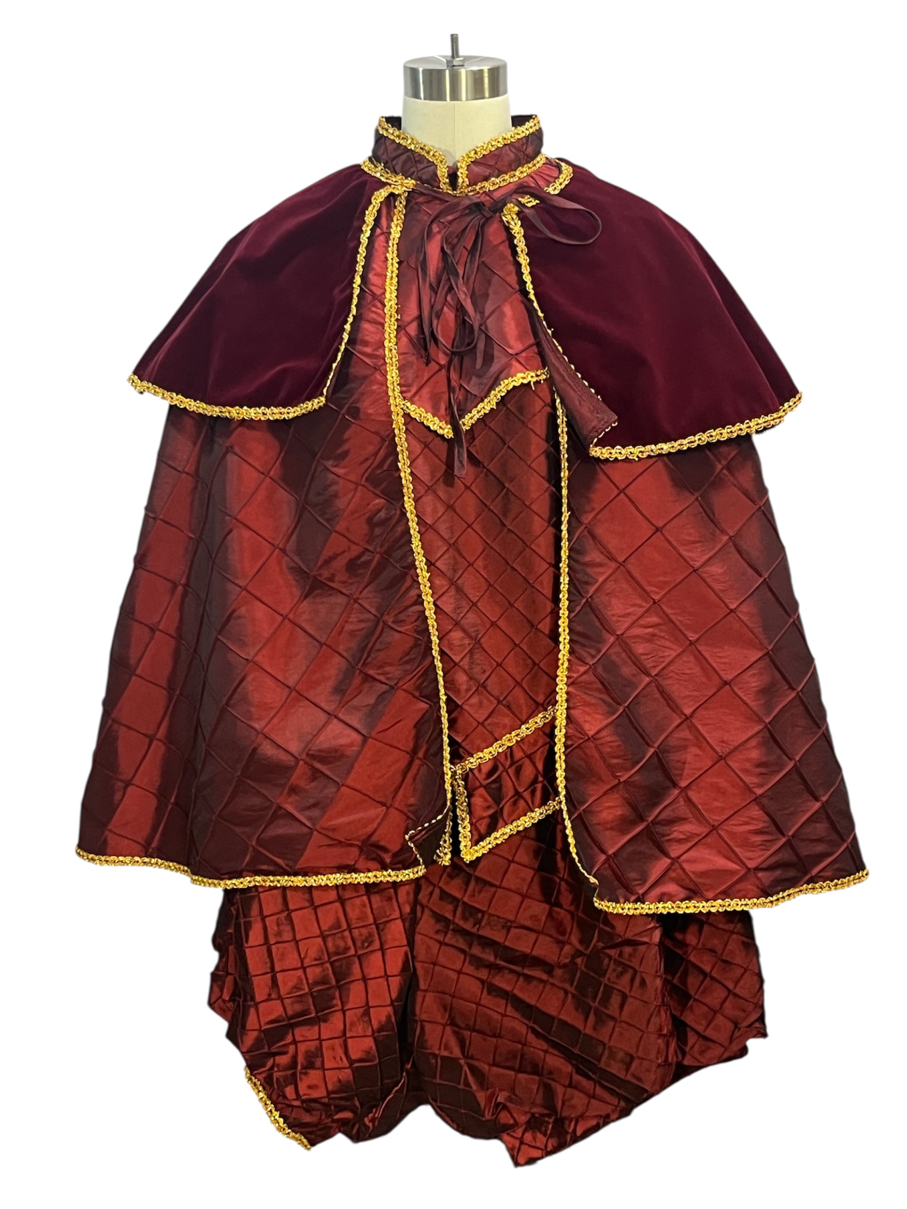 Tunic, Breeches, Cape -Burgundy Diamond Taffeta w/Gold