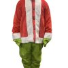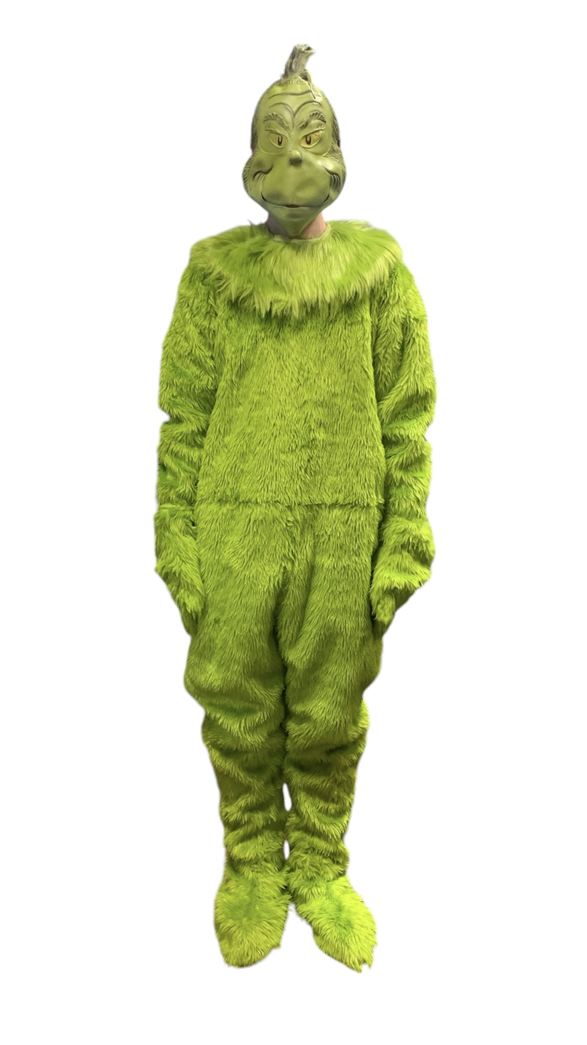 Our Mr. Grinch comes with: Mask, Santa hat, Green fur shirt, Santa jacket, Green fur hands, Green fur pants and Green fur foot covers.