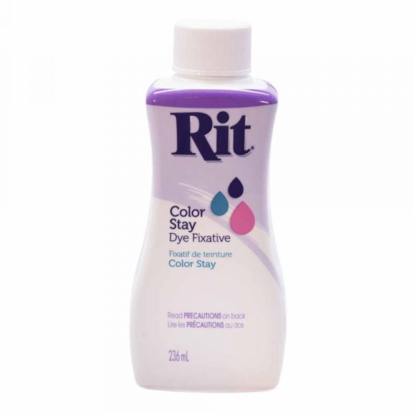 Rit Color Stay Dye Fixative doubles the amount of colour retention in fabrics such as cotton, linen, rayon, ramie, jute and hemp, which have been dyed with Rit Dye. For best results, use immediately after dyeing, before rinsing and laundering. Rit Color Stay Dye Fixative can be used when dyeing in the washing machine, sink or stovetop. It can also be sprayed directly onto fabric for many craft and DIY applications. Commercially dyed items can also be treated with Dye Fixative before laundering for the first time. Previously hand-dyed items can also be treated with Dye Fixative before laundering; however, the results may not be as apparent or long-lasting as when Dye Fixative is used immediately after dyeing.
