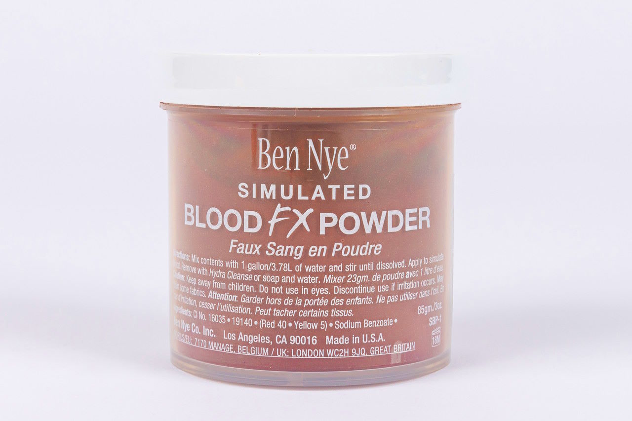 Ben Nye's Simulated Blood FX Powder is a highly concentrated blood colored powder. By mixing with water or glycerin one 3oz container can make a gallon of blood.