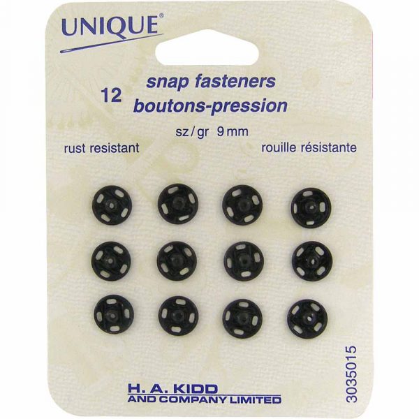 Snap Fasteners Black – size 1 / 9mm (3⁄8″) – 12 sets