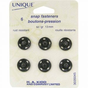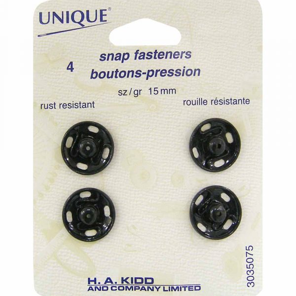 Snap Fasteners Black – size 7 / 15mm (5⁄8″) – 4 sets