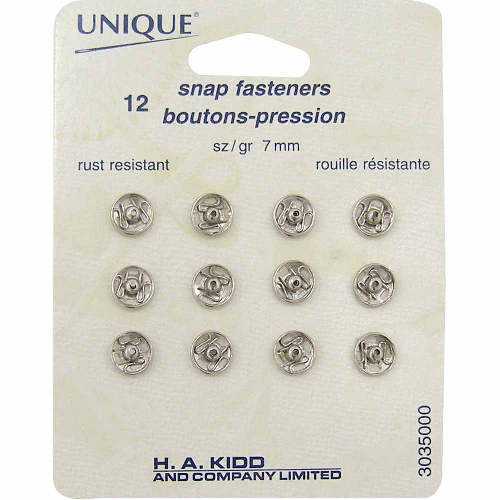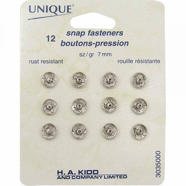 Snap Fasteners Nickel – size 0 / 7mm (1⁄4″) – 12 sets