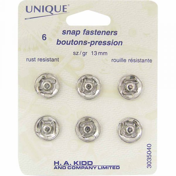 Snap Fasteners Nickel – size 4 / 13mm (1⁄2″) – 6 sets