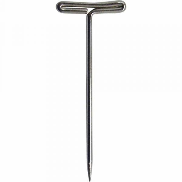 Nickel plated tempered steel in a blister pack. T-pins are for every sewist, knitter and crafter. They are perfect for securing wigs on canvas wig blocks. They can be used to hold heavy and loosely-woven fabric together. They are strong and that makes them perfect for pinning fabric to upholstery and sewing thick fabrics like canvas. They are ideal for blocking knitted materials. The T shape is easy to handle. Rust resistant.