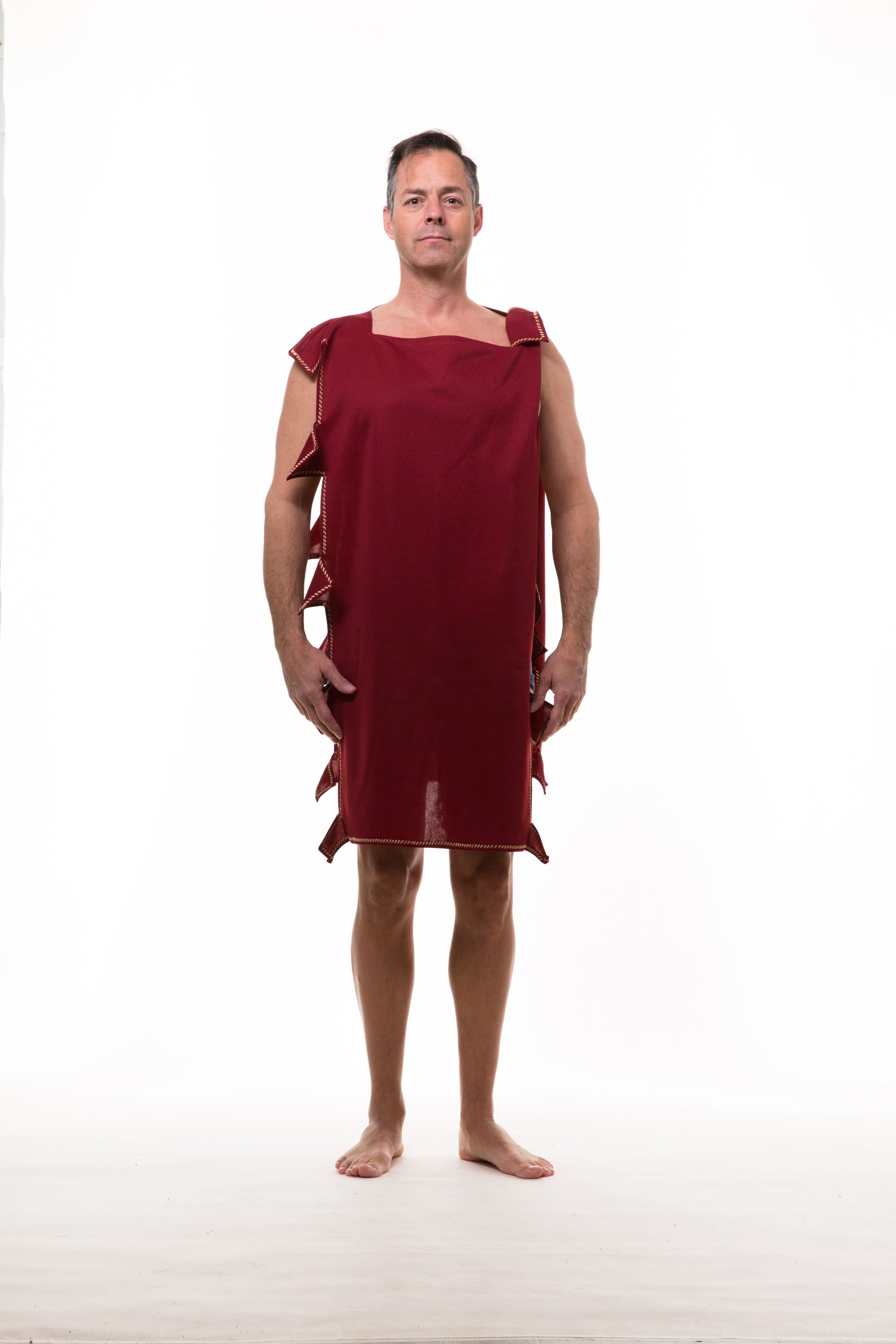 -Maroon tabard with open sides