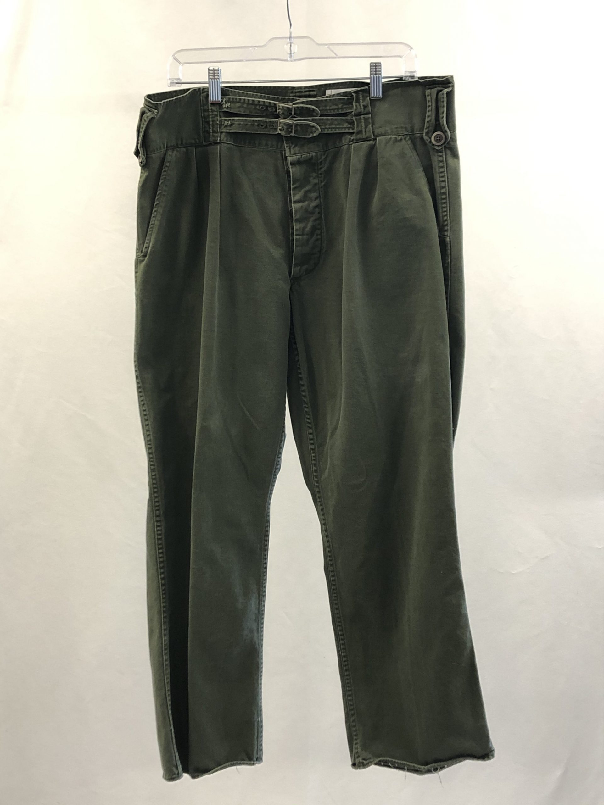 - Green army pants with buckle closures