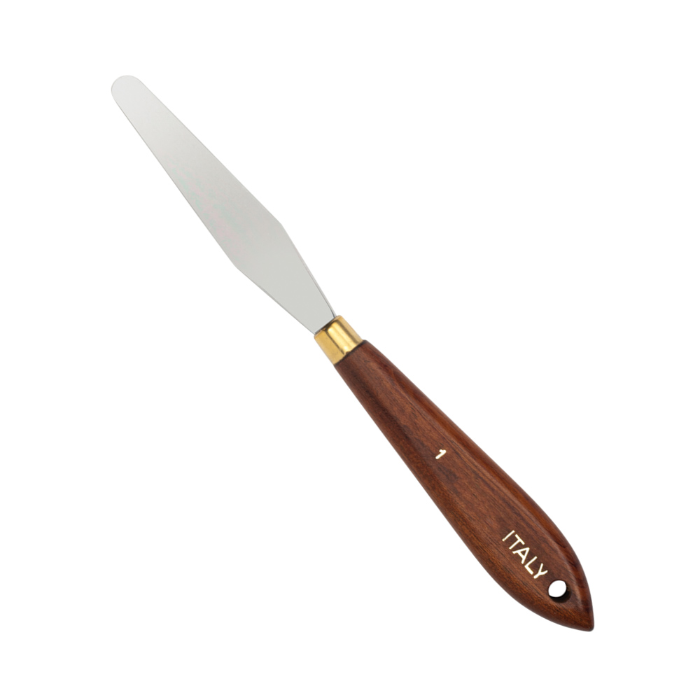 Flat, flexible stainless blade with wood handle. Perfect multi-purpose tool for blending, smoothing, scoring, etc. Wipe clean with alcohol.