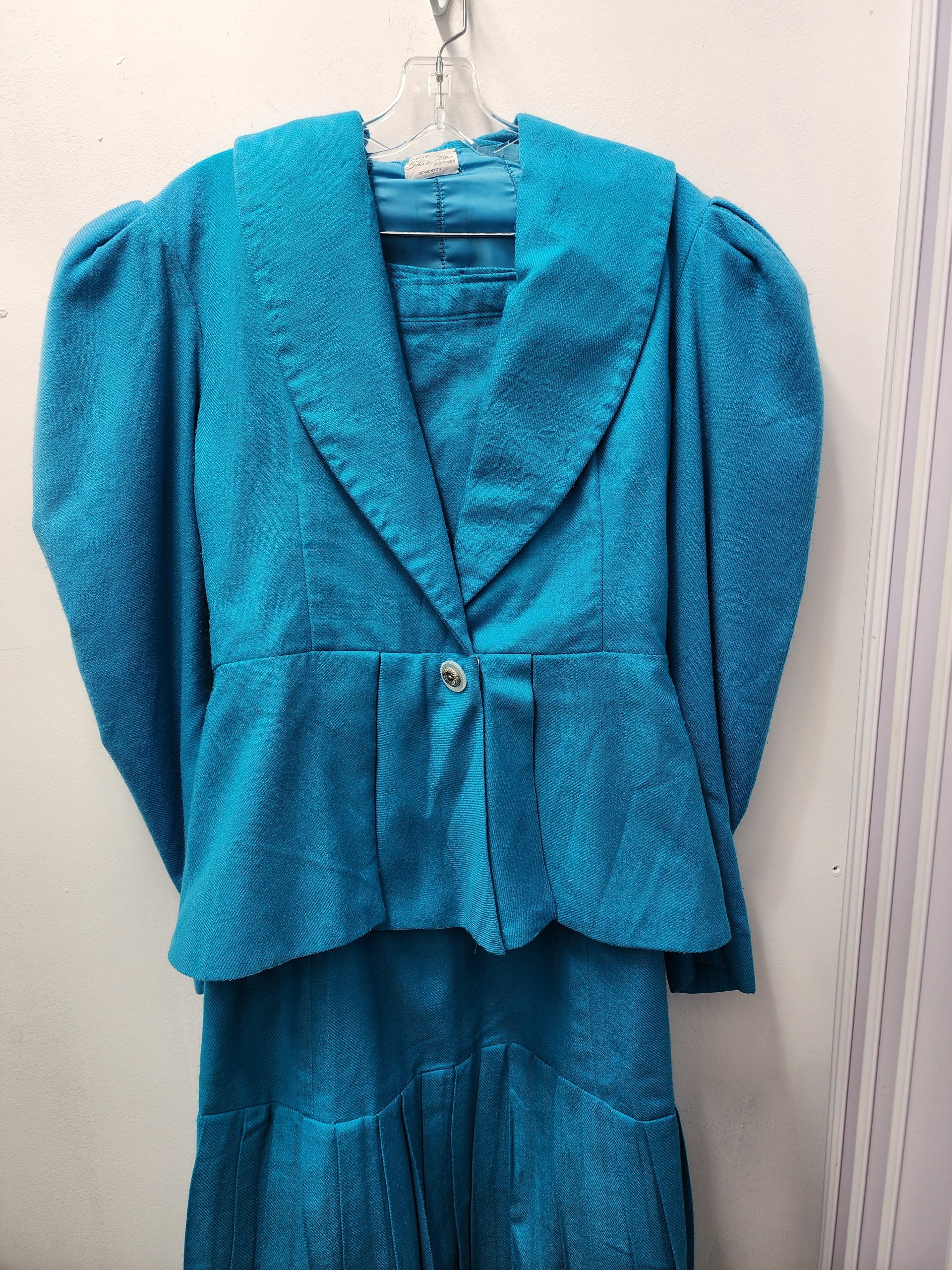 Teal Wool Jacket w/Silver Button CF, matching Skirt Blouse