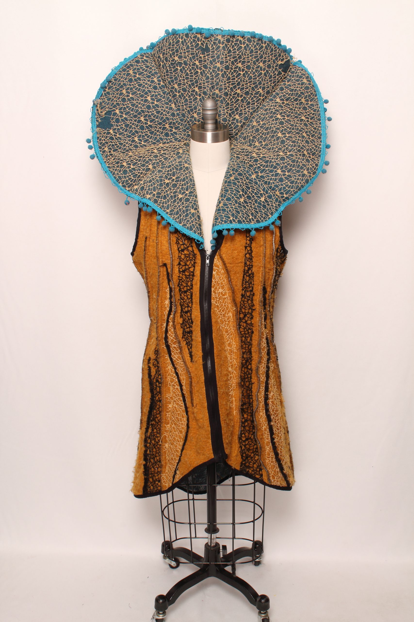 • Brown and black tunic with large blue decorative collar