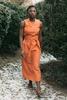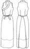 The Chupa features an asymmetrical wrap front, front and back shaping darts, wide neckband, and simple faced armholes, and unique side extensions that wrap around the back to tie in front. The resulting silhouette is slim, yet the extensions enable enough leg room to make walking easier than most wrap skirts. Both the Chupa and Chupa inspired wrap skirt can be made in the traditional ankle length or below the knee length.