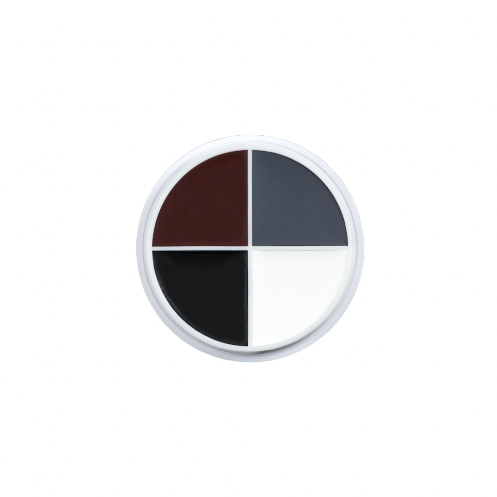 The Vampire Wheel is a compact 4-color wheel that features tones in our highly pigmented creme formula that are essential for creating undead vampire themed makeup. Use these shades to create a pale complexion, and with black, and create depth with the deep blue and violet tones.