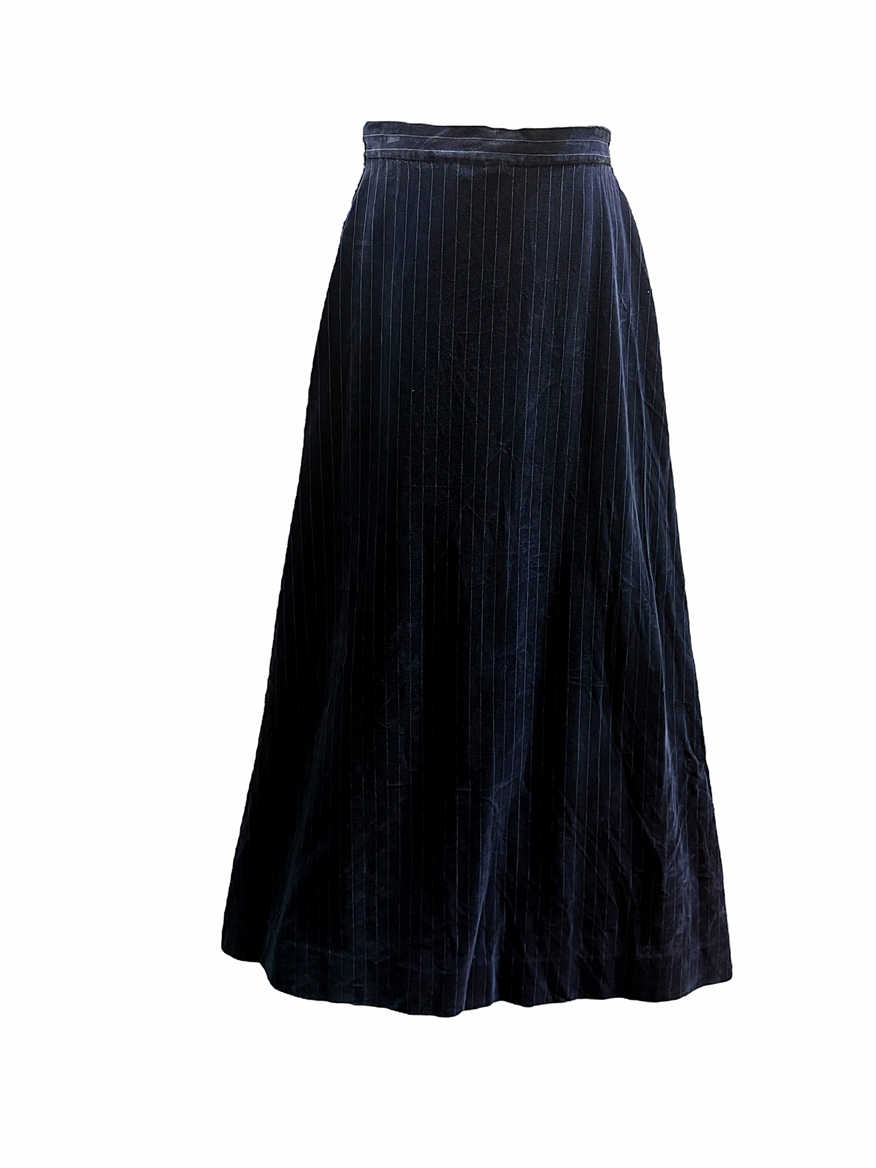 -Velvet navy pinstripe walking skirt