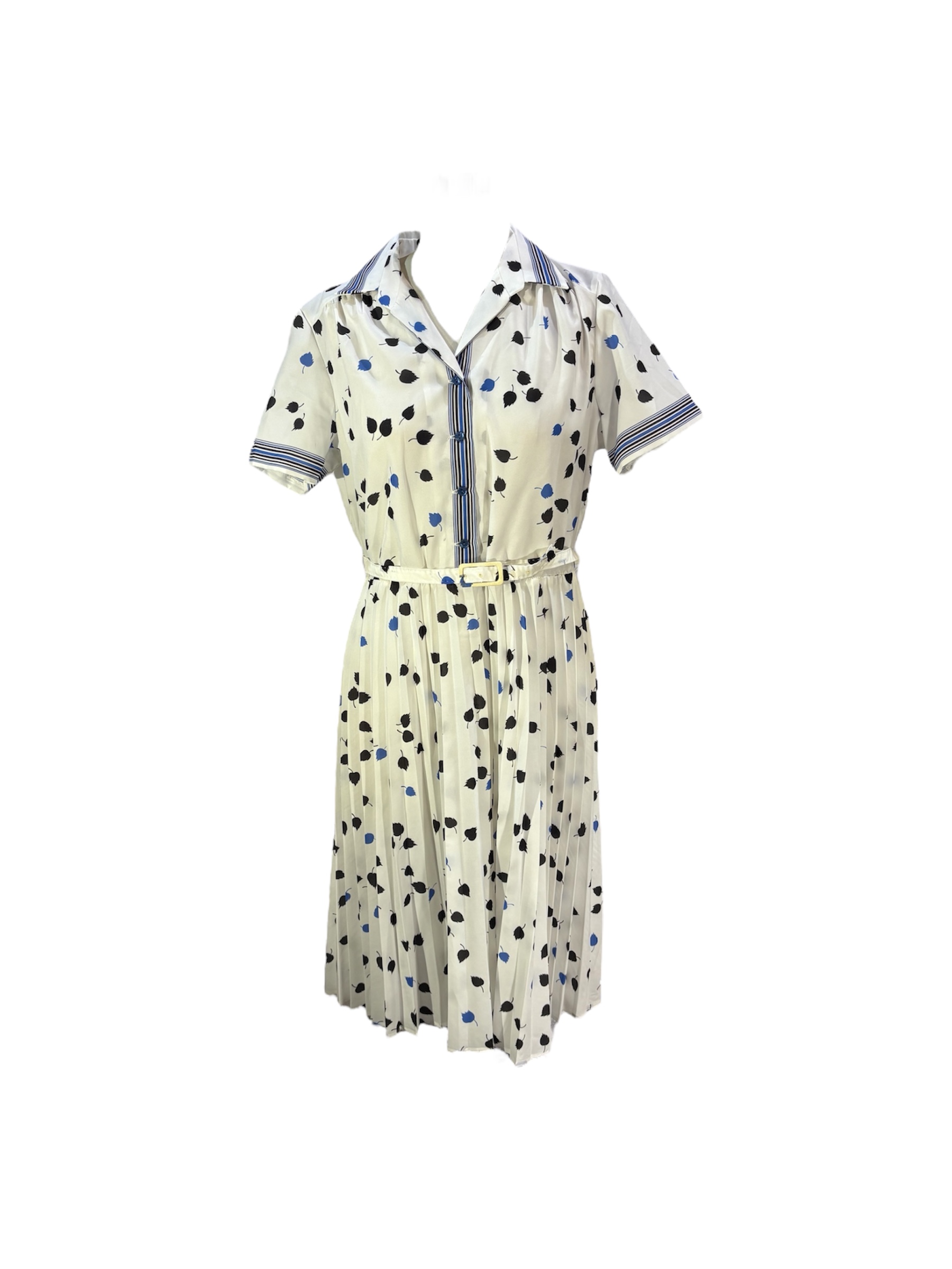 -White dress with blue leaf pattern