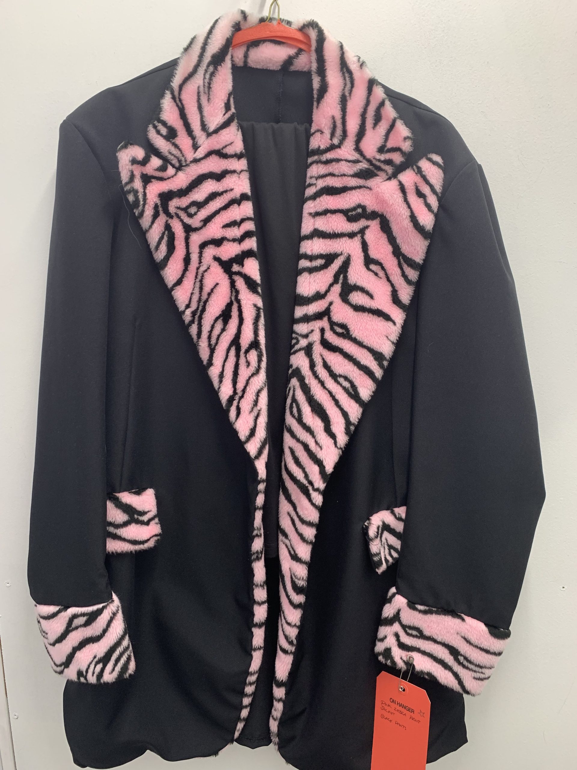 Pink Zebra Print, Jacket, Black Pants